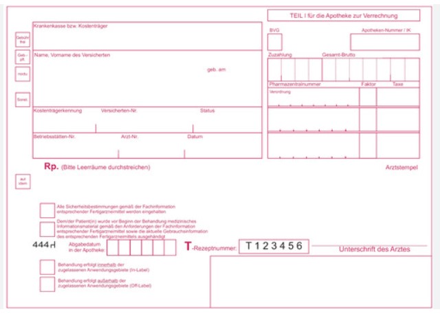 Diese spezielle Rezeptform wird für bestimmte Medikamente mit hohem Risiko oder Missbrauchspotential verwendet, wie bestimmte onkologische Therapeutika. Sie sind strengen Kontroll- und Dokumentationspflichten unterworfen.